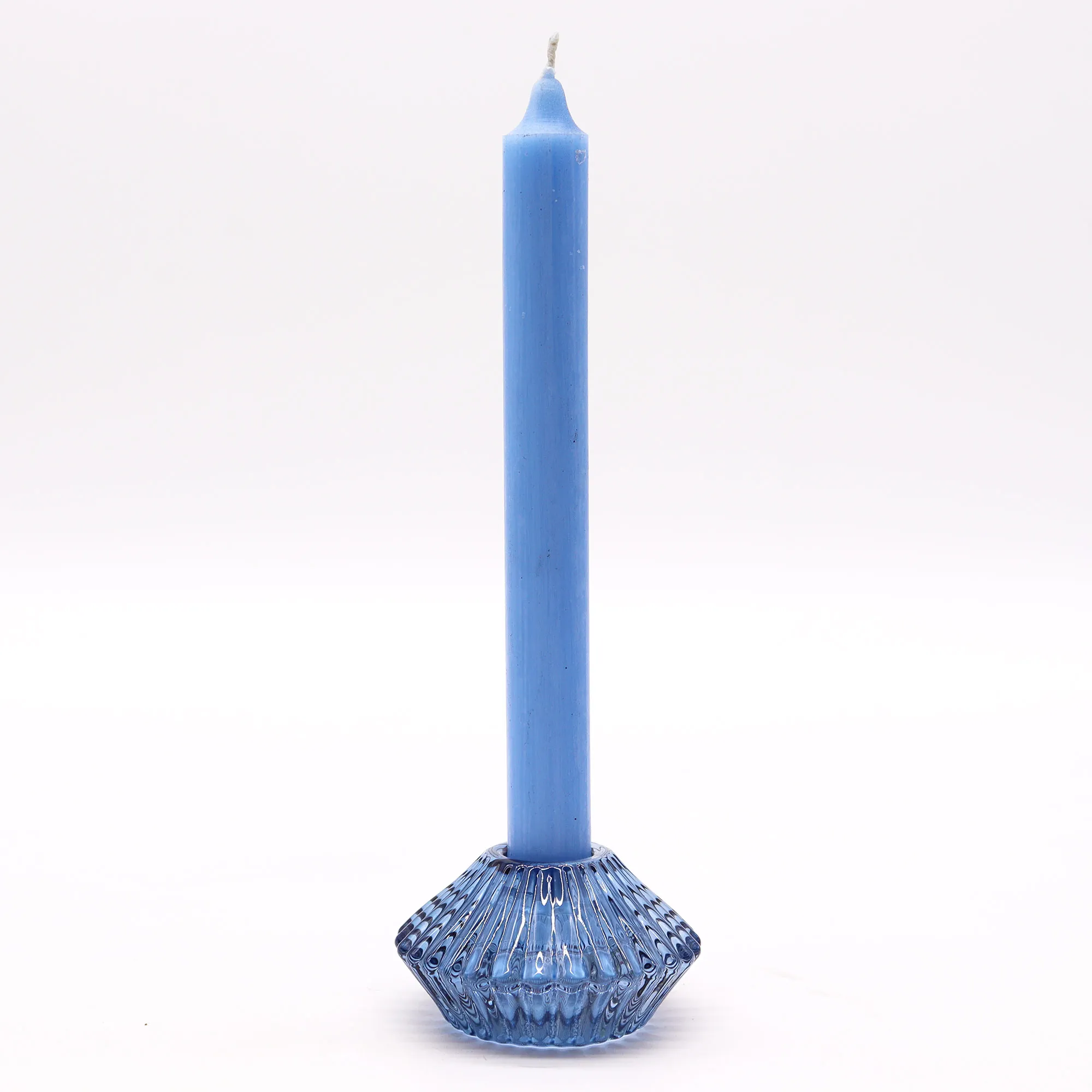 Lillekujuline küünlahoidja sinine eristub tavalistest küünlahoidjatest oma unikaalse lilleõie kujuga. Pressitud klaasi kroonlehtede muster loob küünlaleegi valguses kauneid varjumänge, mis meenutavad päris lille pehmet tekstuuri. Lisaks sellele on hoidja pööratav — üks pool on mõeldud õhtusöögiküünlale, teine teeküünlale.