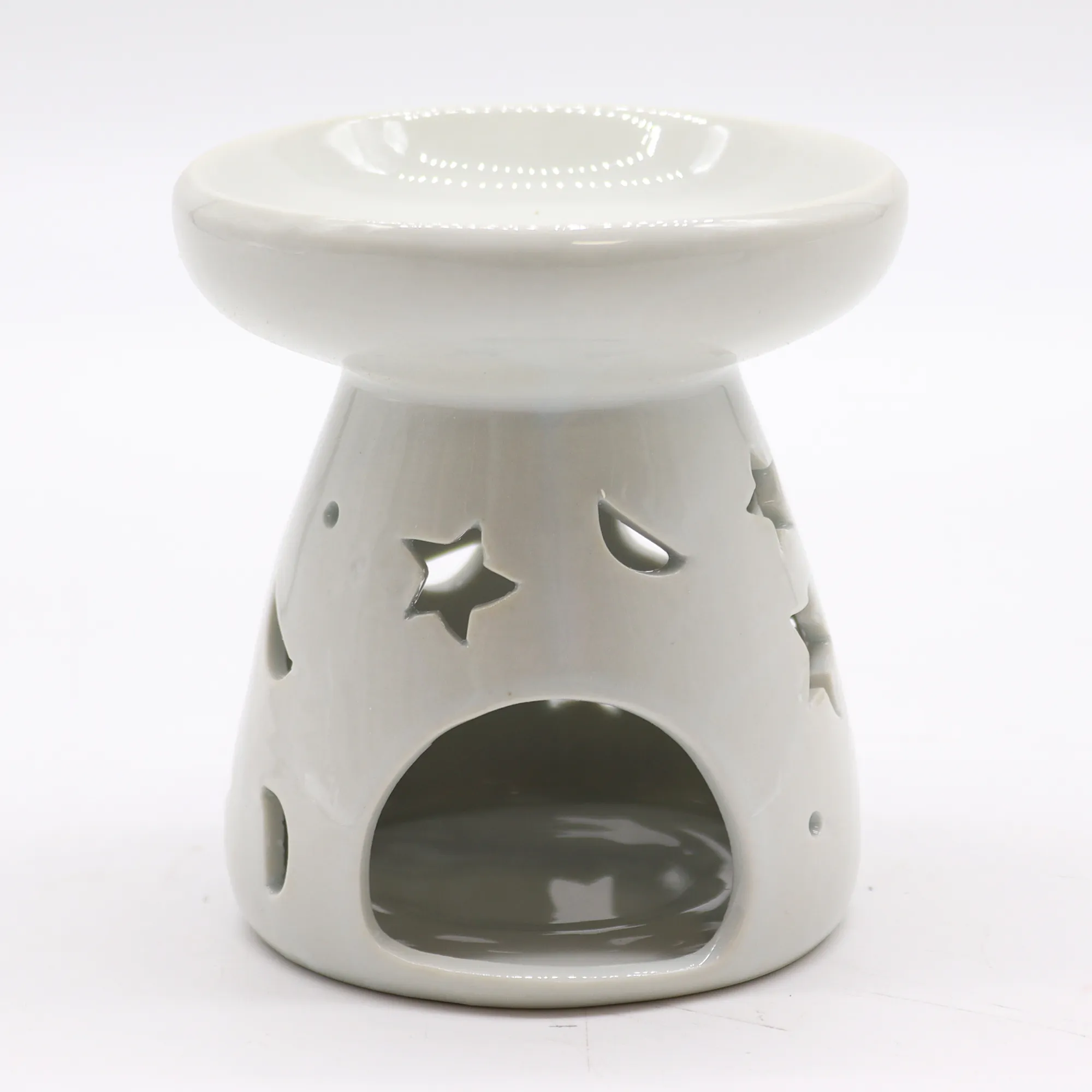 Suur Keraamiline Aroomilamp Kuu — Valge Õlipõleti Kuu ja Tähe Mustriga