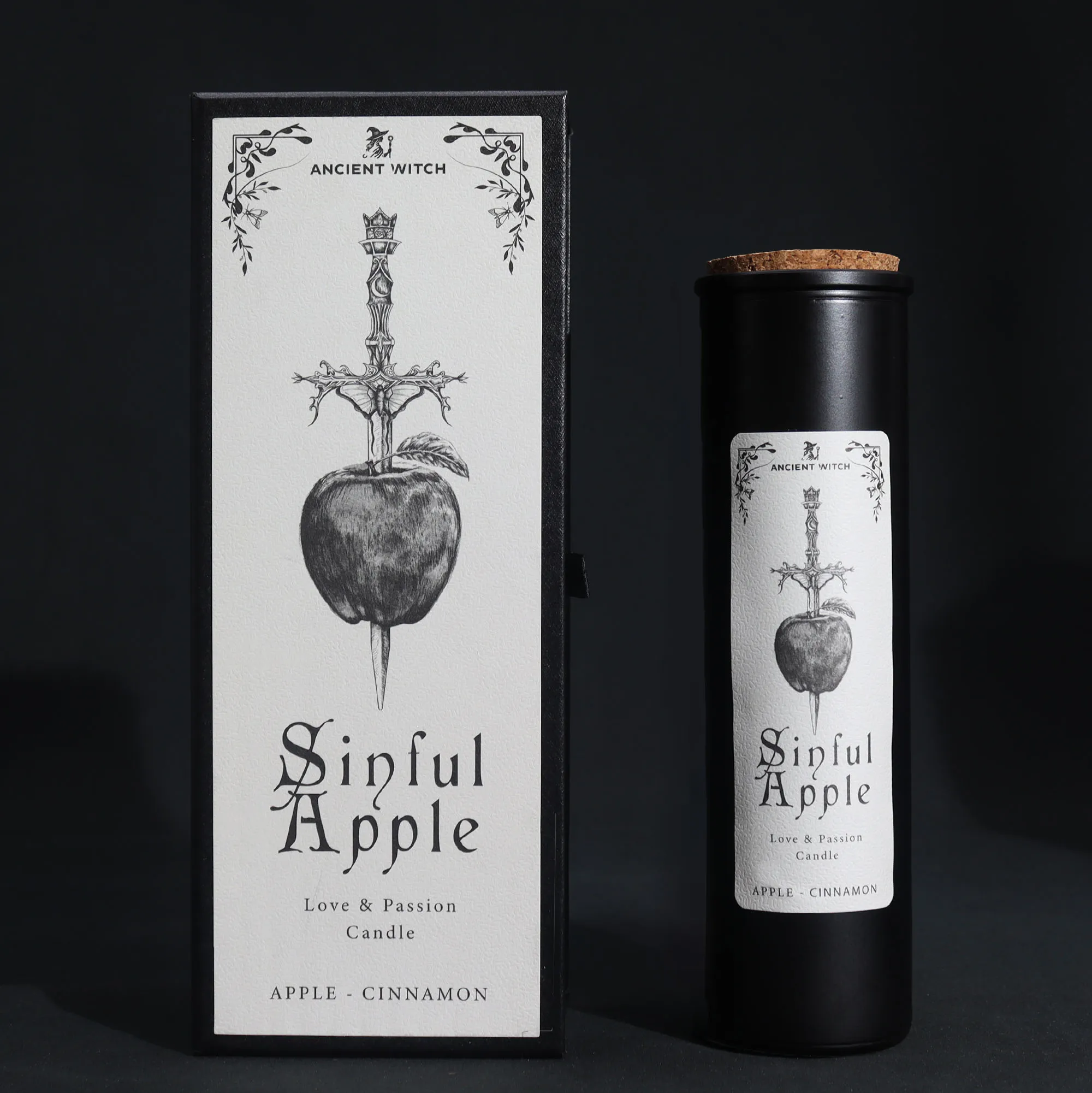 Armastus nõuab julgust ja see armastuse rituaalküünal Sinful Apple on loodud neile, kes julgevad armastada kogu südamest. Käsitööna sojavahast valmistatud küünal on kaunistatud rituaalse noa (athame) ja õuna motiividega, mis äratavad kiusatuse ja julguse energiat. Õuna ja kaneeli soe aroom täidab ruumi, luues sensoorse ja kirgliku meeleolu.