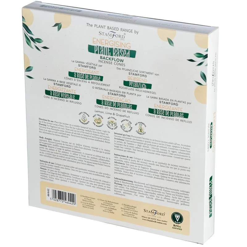 Stamford Premium taimsed backflow viirukikoonused on käsitsi rullitud looduslikest taimsetest materjalidest ja vaigust. Kõrgem lõhnaaine sisaldus tagab intensiivse ja värske aroomi, mis täidab ruumi kiiresti. Iga koonus põleb umbes 30 minutit, luues dramaatilise ja kaunilt voolava suitsuefekti.