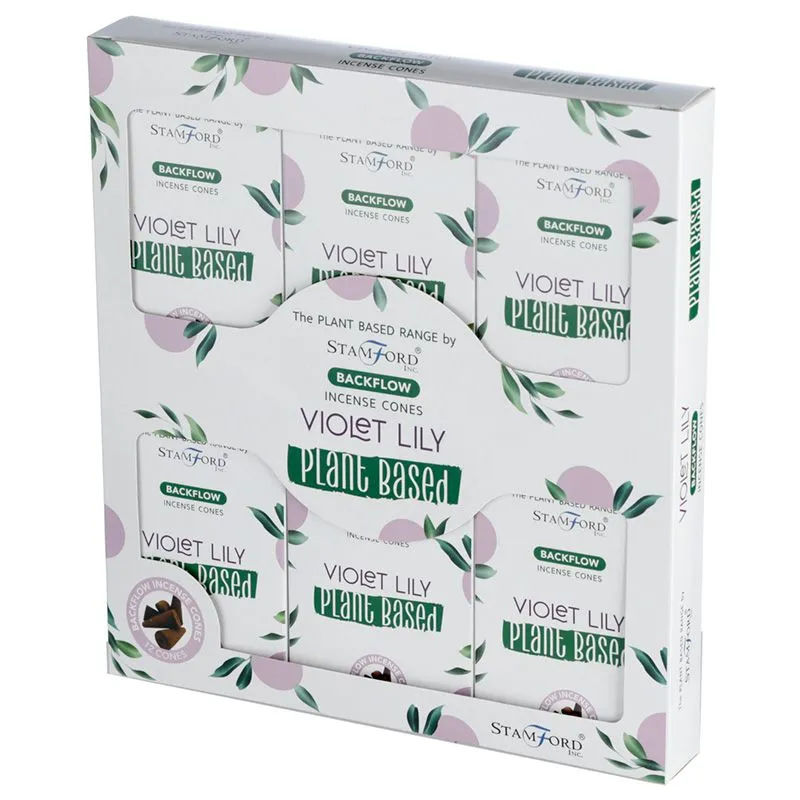 Backflow koonus liilia aroomiga — Stamford Premium taimne viirukikoonus. 12 käsitsi rullitud koonust violetse liilia lõhnaga.