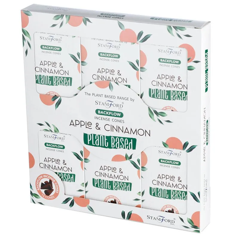 Stamford Premium taimsed backflow viirukikoonused on käsitsi rullitud looduslikest taimsetest materjalidest ja vaigust. Kõrgem lõhnaaine protsent tagab, et õuna ja kaneeli aroom on intensiivne ja rikkalik. Iga koonus põleb umbes 30 minutit, luues kaunilt voolava suitsuefekti su backflow põletil.