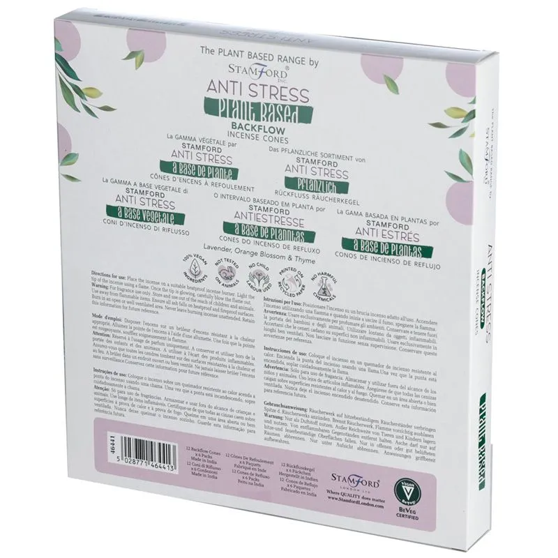 Stamford Premium taimsed backflow viirukikoonused on käsitsi rullitud looduslikest taimsetest materjalidest ja vaigust. Kõrgem lõhnaaine protsent tagab intensiivse ja kauakestva rahustava aroomi. Iga koonus põleb umbes 30 minutit, pakkudes kogu selle aja jooksul sujuvat ja keerlevat suitsuefekti.