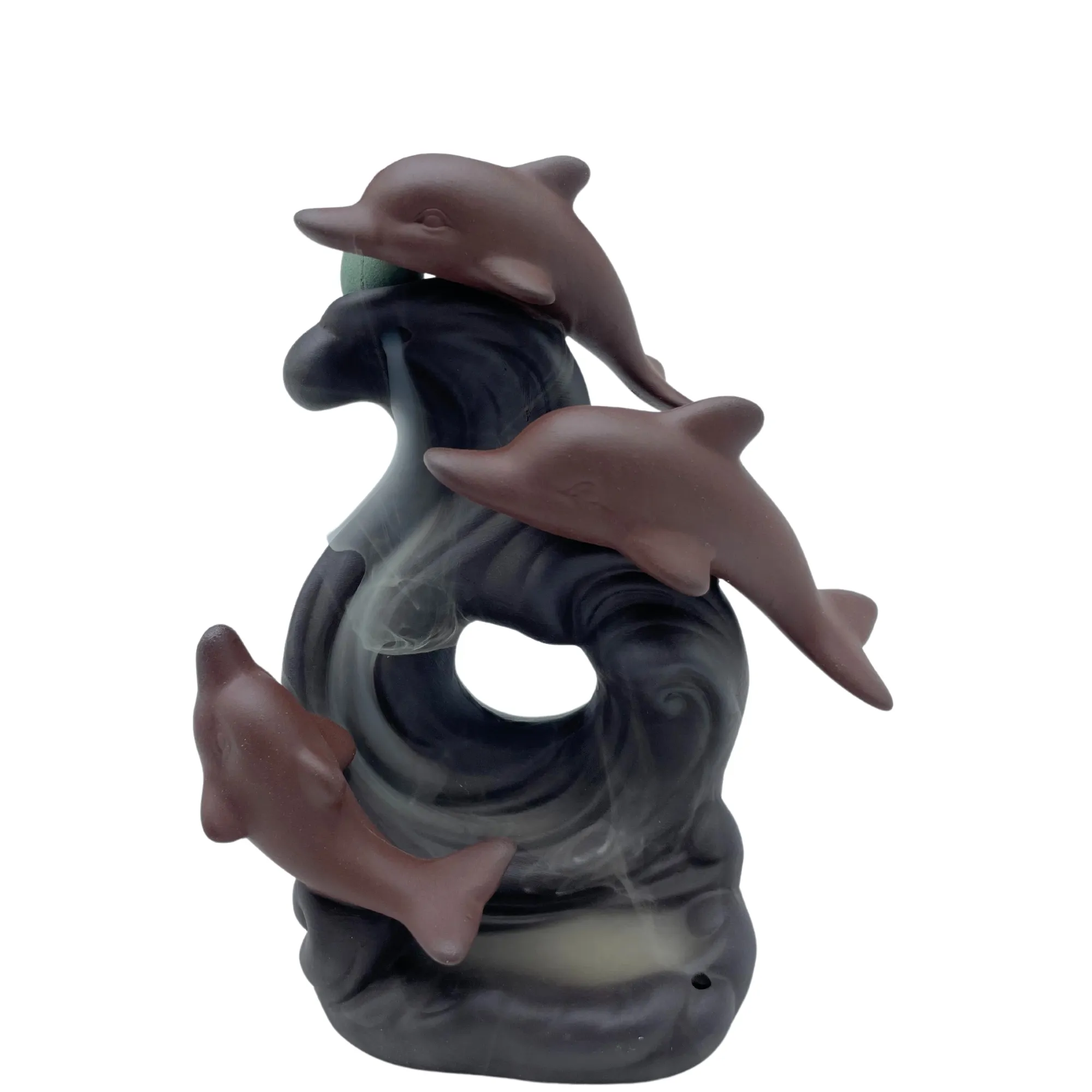 Delfiinide viirukipõleti kolme delfiini ja lainemotiiviga loob ookeani rahustavat atmosfääri. Keraamikast backflow põleti mereteemaga.