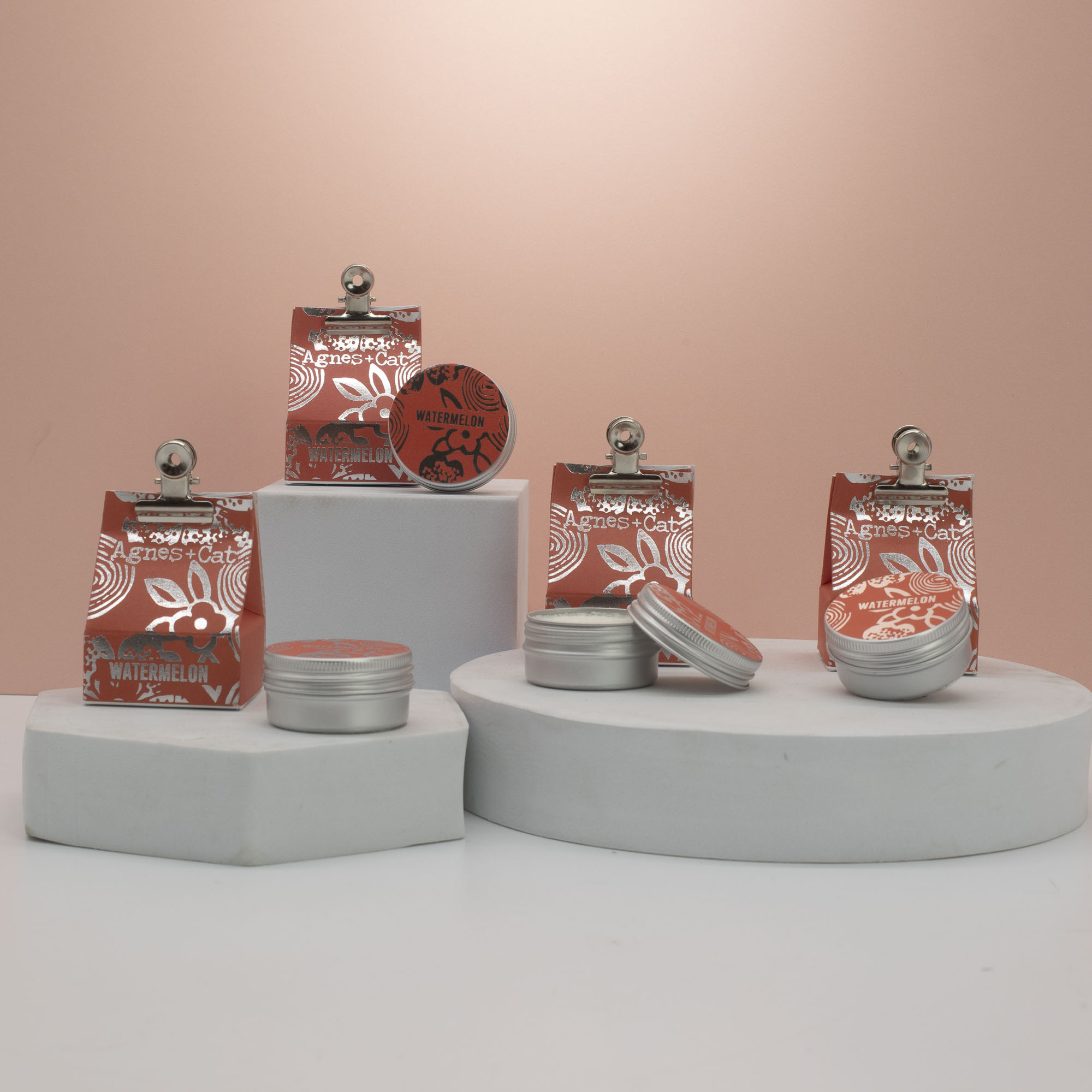 See huulepalsam arbuus on käsitsi valmistatud Sheffieldis, Suurbritannias. Agnes + Cat huulepalsam sisaldab toitvat sheavõid, mangovõid, avokaadovõid ja jojoba õli, mis niisutavad ja kaitsevad su huuli. Mahusa arbuusi lõhn teeb iga pealekandmise nauditavaks sensoorseeks elamuseks.