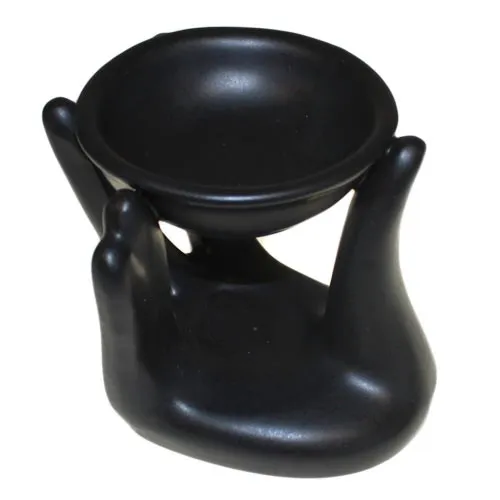 Keraamika Aroomilamp Abistav Käsi Must — Disainpõletaja Eeterlikele Õlidele