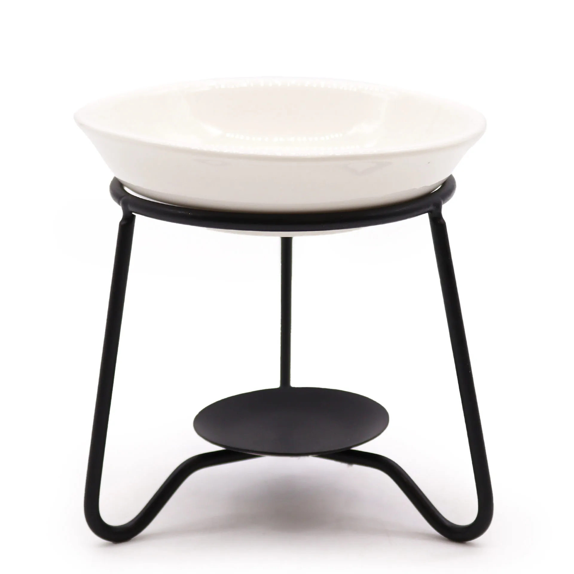 Keraamika ja metall aroomilamp lihtsa alusega — minimalistlik põletaja eeterlike õlide ja vahade lõhnastavaks kasutamiseks. Puhas ja elegantne disain.
