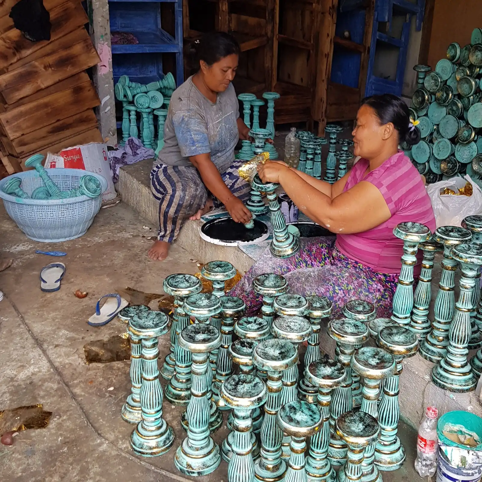 Iga keskmine türkiis küünlahoidja on valmistatud käsitööna albaasia puidust Indoneesia meistrite poolt. Ornamentaalne nikerdus on detailirohke ja kaunis, mistõttu on iga eksemplar ainulaadne. Seetõttu on see rohkem kui lihtsalt küünlahoidja — see on käsitöö kunstiteos, mis kannab endas iidseid traditsioone.