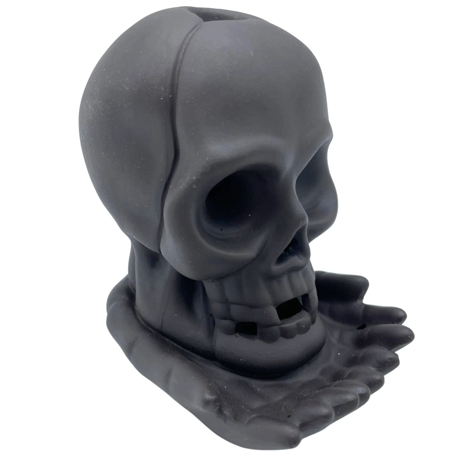 Koljukujuline suitsupõleti valgustusega loob gootilikult elegantse efekti, kus suits voolab kolju silmadest. Keraamikast backflow alus.