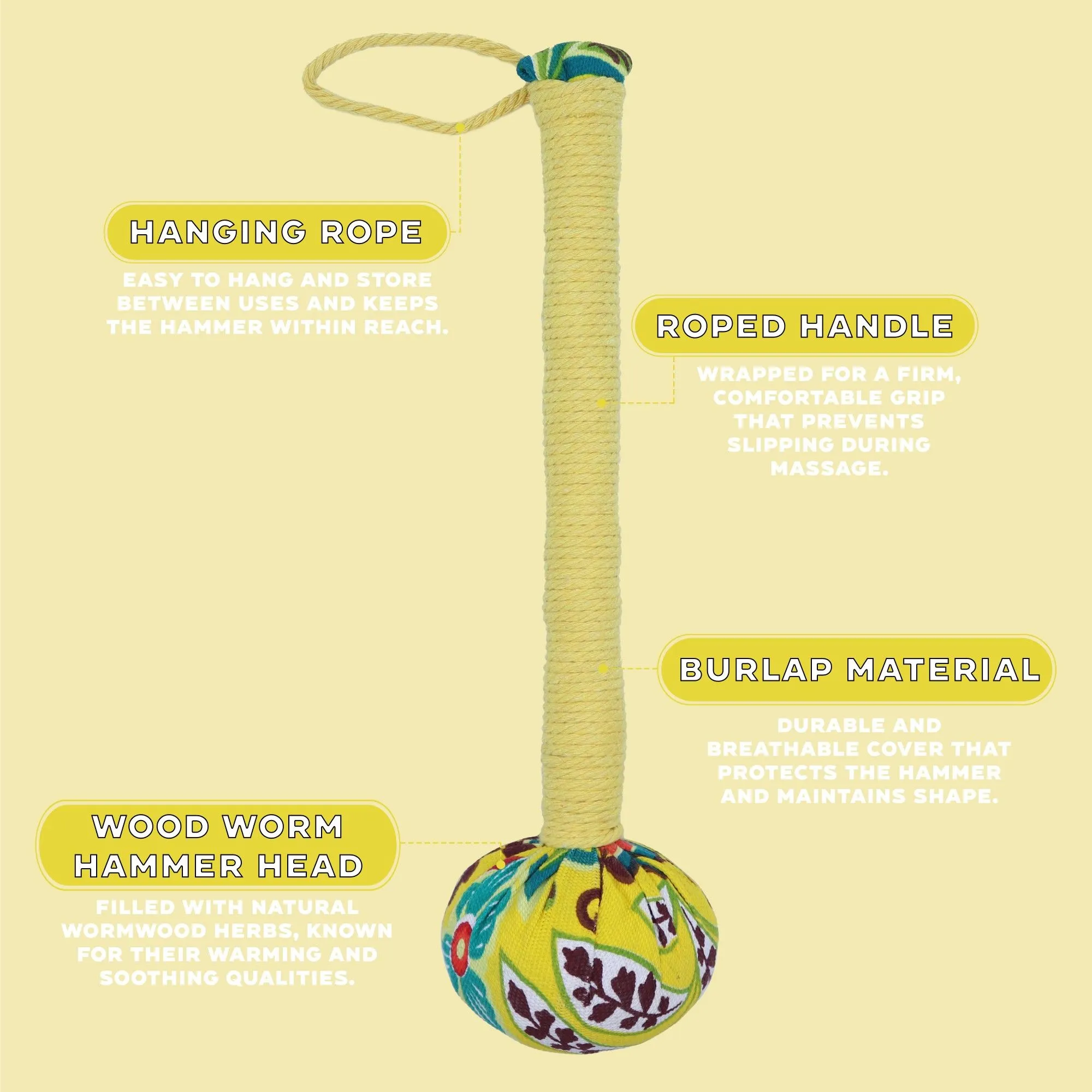Bambus on looduse enda poolt loodud ideaalne materjal massaažitööriistale — kerge, tugev ja meeldivalt sile. See bambusest massaažihaamer on polüestrist kattega ja täidetud aromaatsete koirohuhelbidega, mis annavad kasutamise ajal edasi pehme, mahe lõhna.