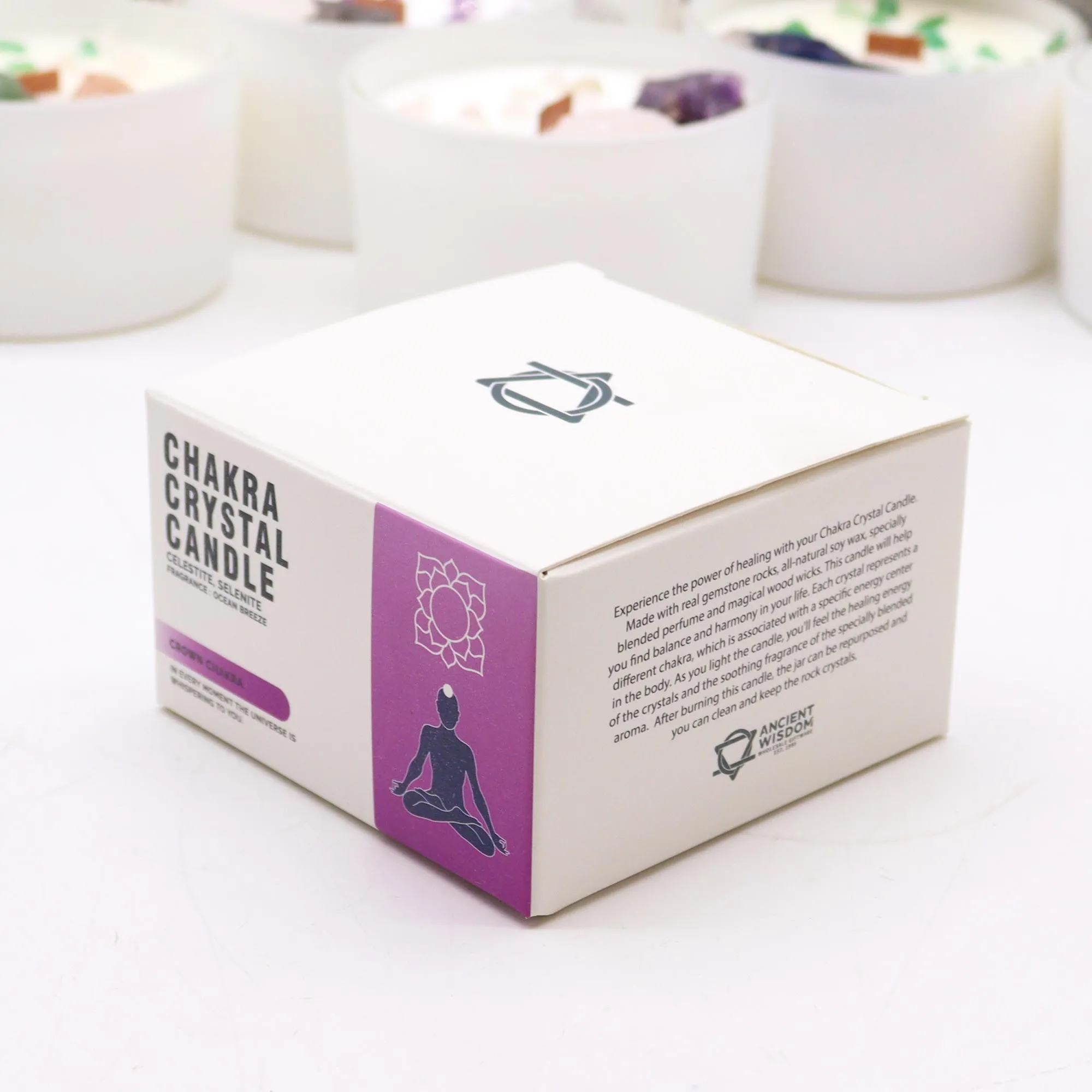 Kroonitsakra kristalliküünal sojavahast. Tsölestiidi ja seleniidiga. Ocean Breeze aroom ja puittaht vaimse ühenduse rituaaliks. Põlemisaeg 17h.