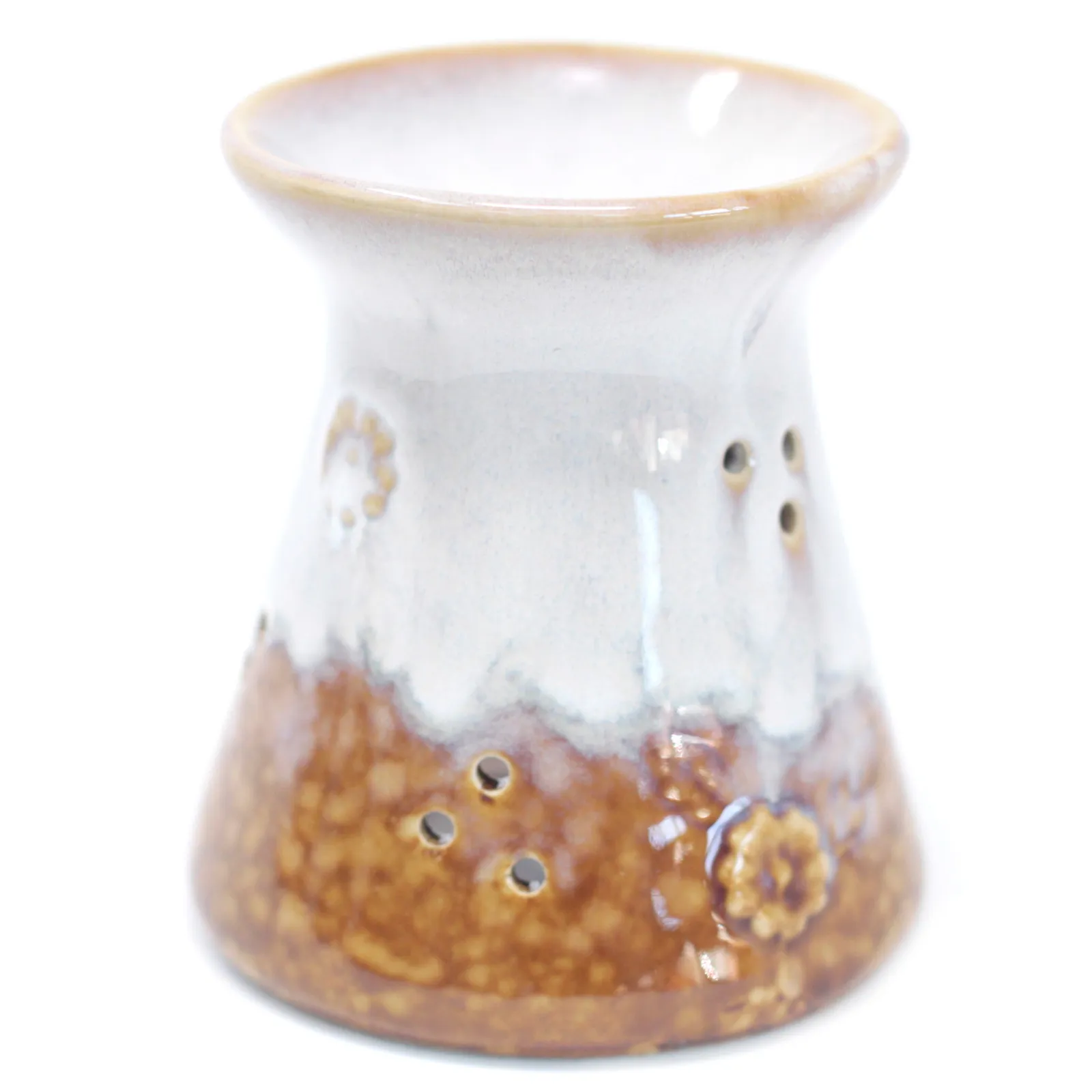 Lilleline rustikaalne aroomilamp — terrakotastiilis keraamika aroomilamp lillemustriga. Sobib lõhnaõlidele ja vahale. Unikaalne kingitus.