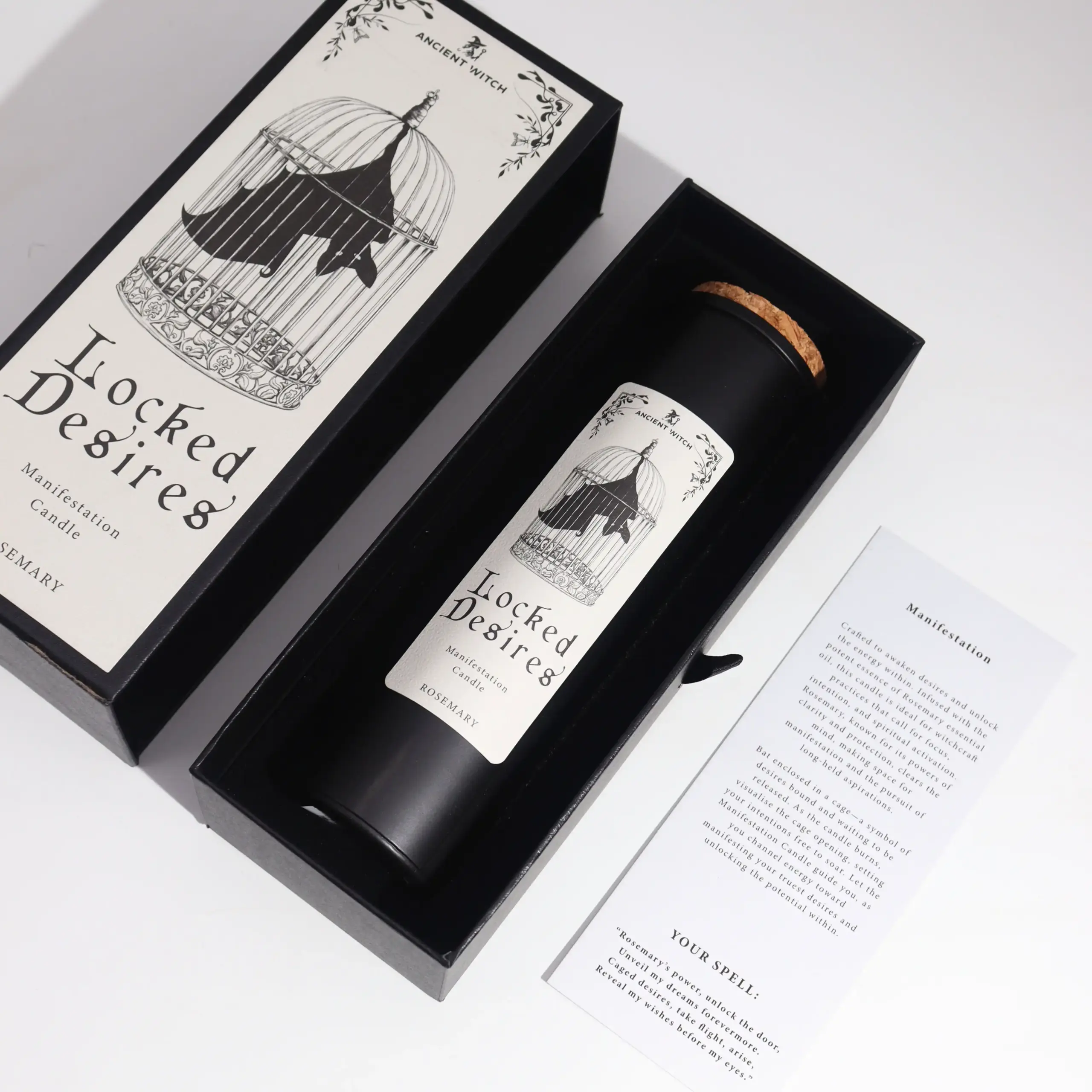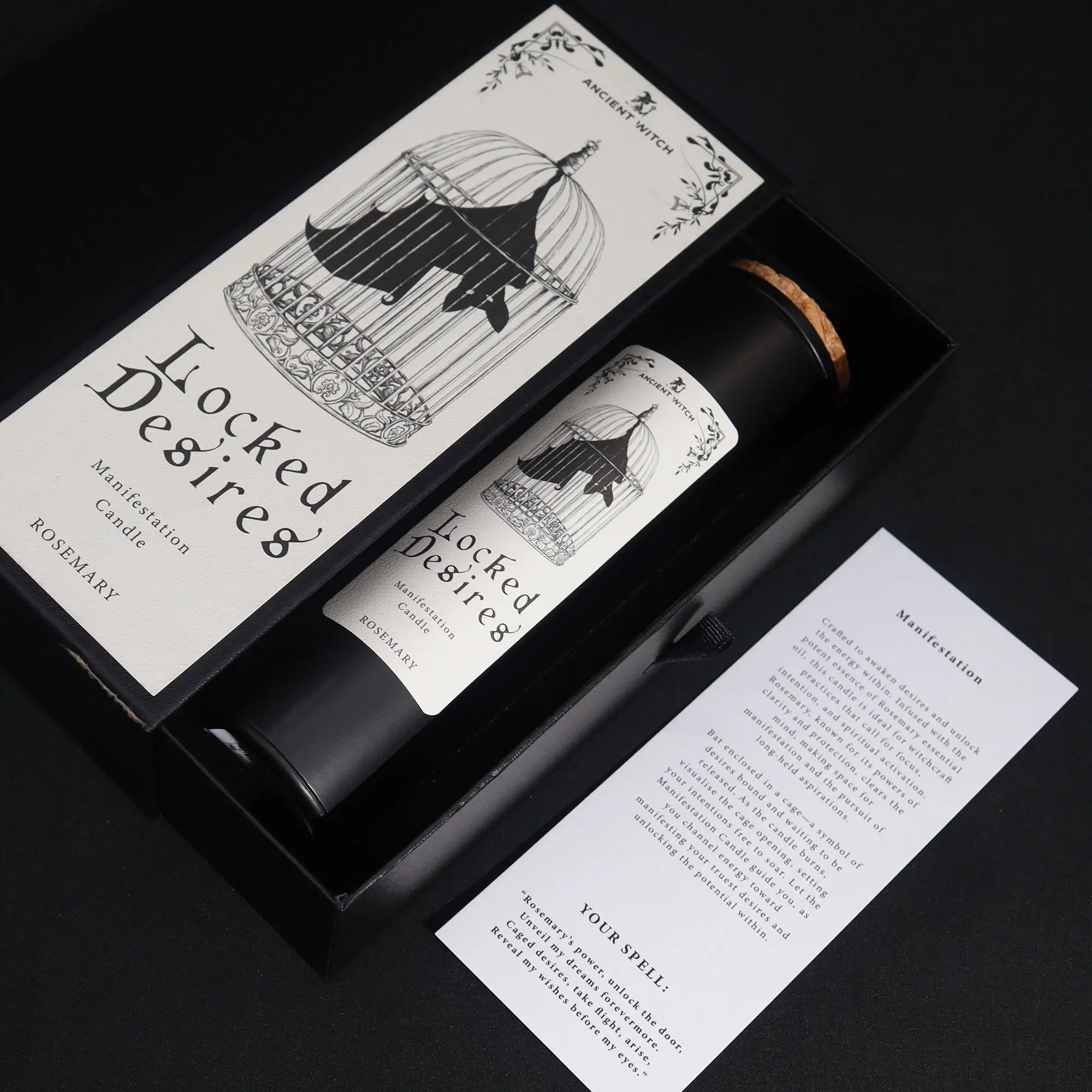 Manifesteerimise küünal Locked Desires. Rosmariini sojaküünal 700 g. Rituaalkaart ja kinkekarp. Unistuste ja eesmärkide manifesteerimiseks.