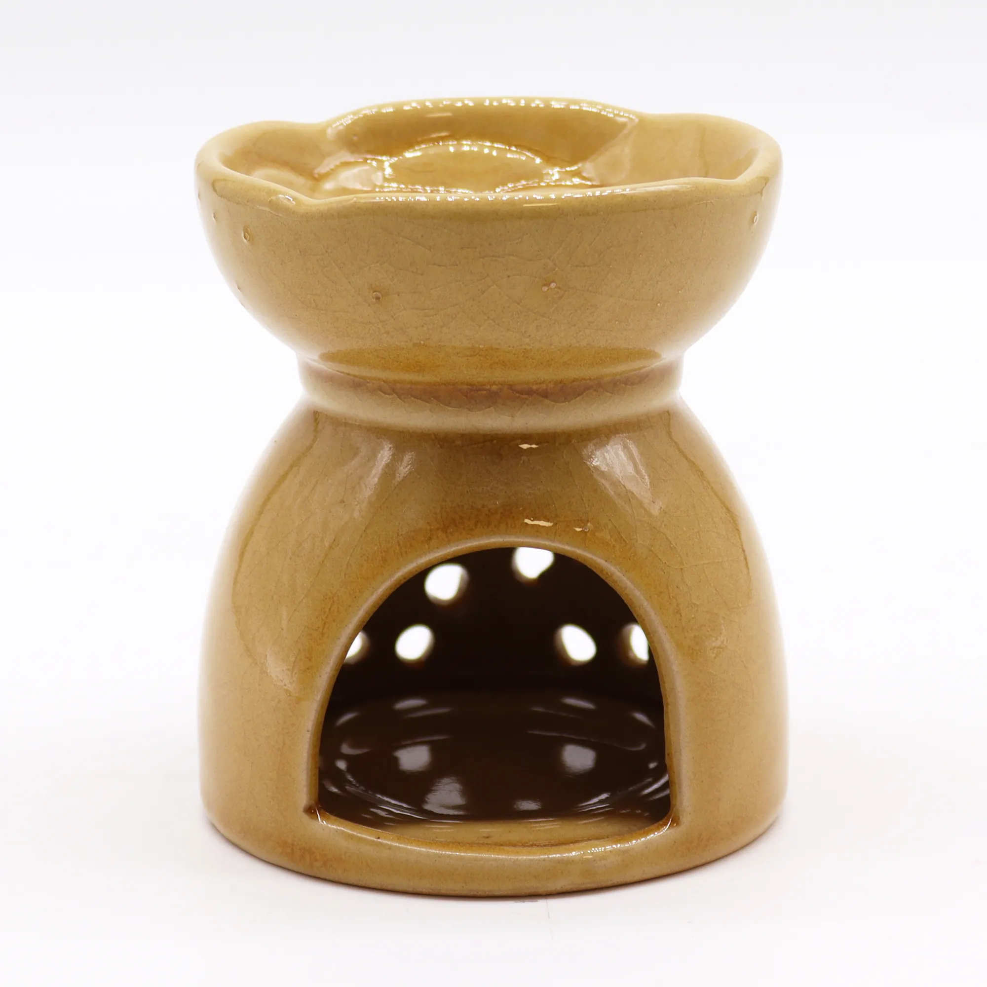 Keraamiline mee värvi aroomilamp on ajatu viis nautida eeterlike õlide ja lõhnaõlide aroomiteraapiat. See ei vaja elektrit — piisab ühest teeküünlast ja mõnest tilgast lõhnaõlist, et täita ruum meeldiva aroomiga. Soojus vabastab lõhnaained aeglaselt, luues pehme ja kauakestva lõhnabuketi, mis ei ole pealetükkiv.