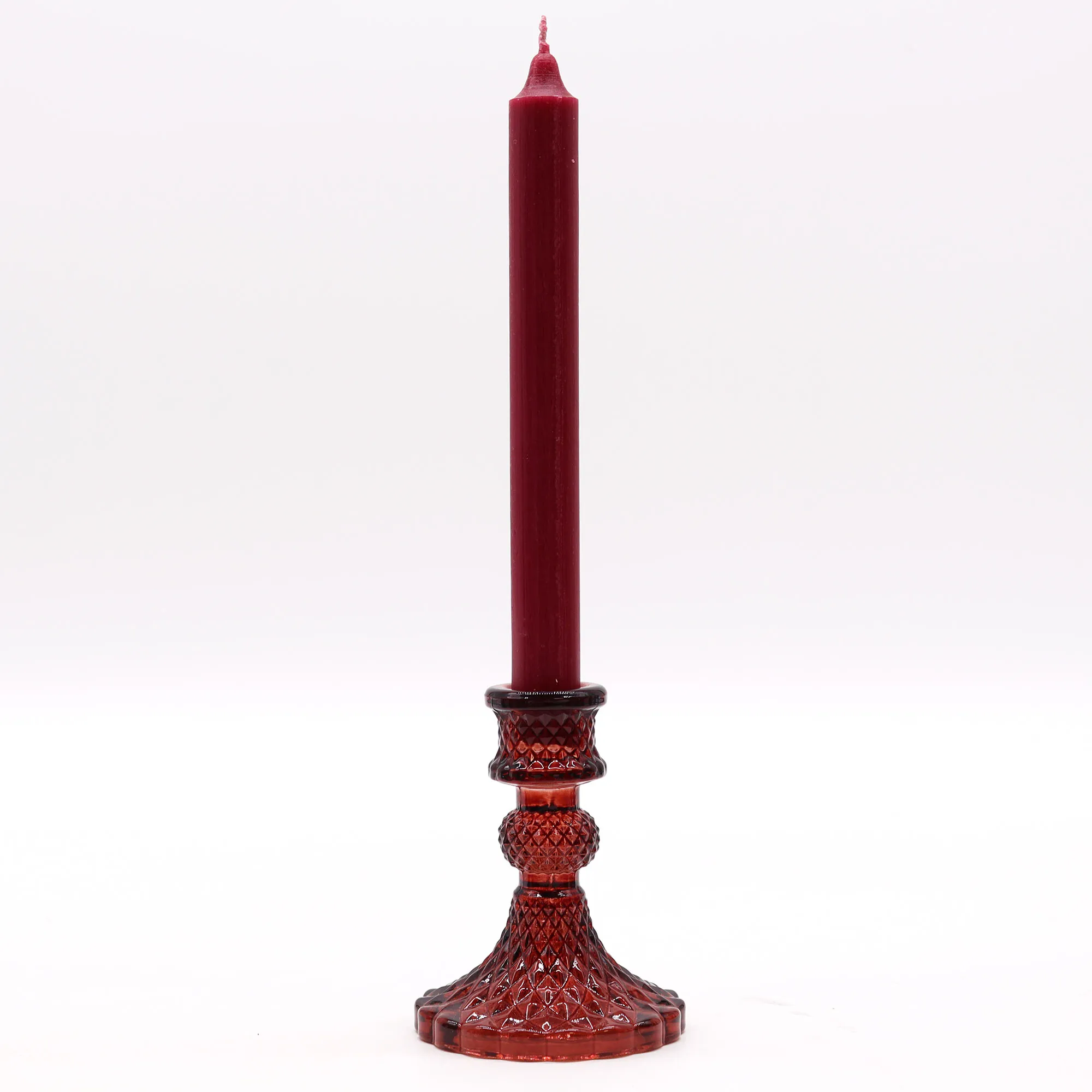 Punane klaasist küünlahoidja — 2 vintage pressitud klaasist hoidjat sügavas vampiiripunases toonis. Kirglik ja elegantne valik romantilisteks õhtuteks.