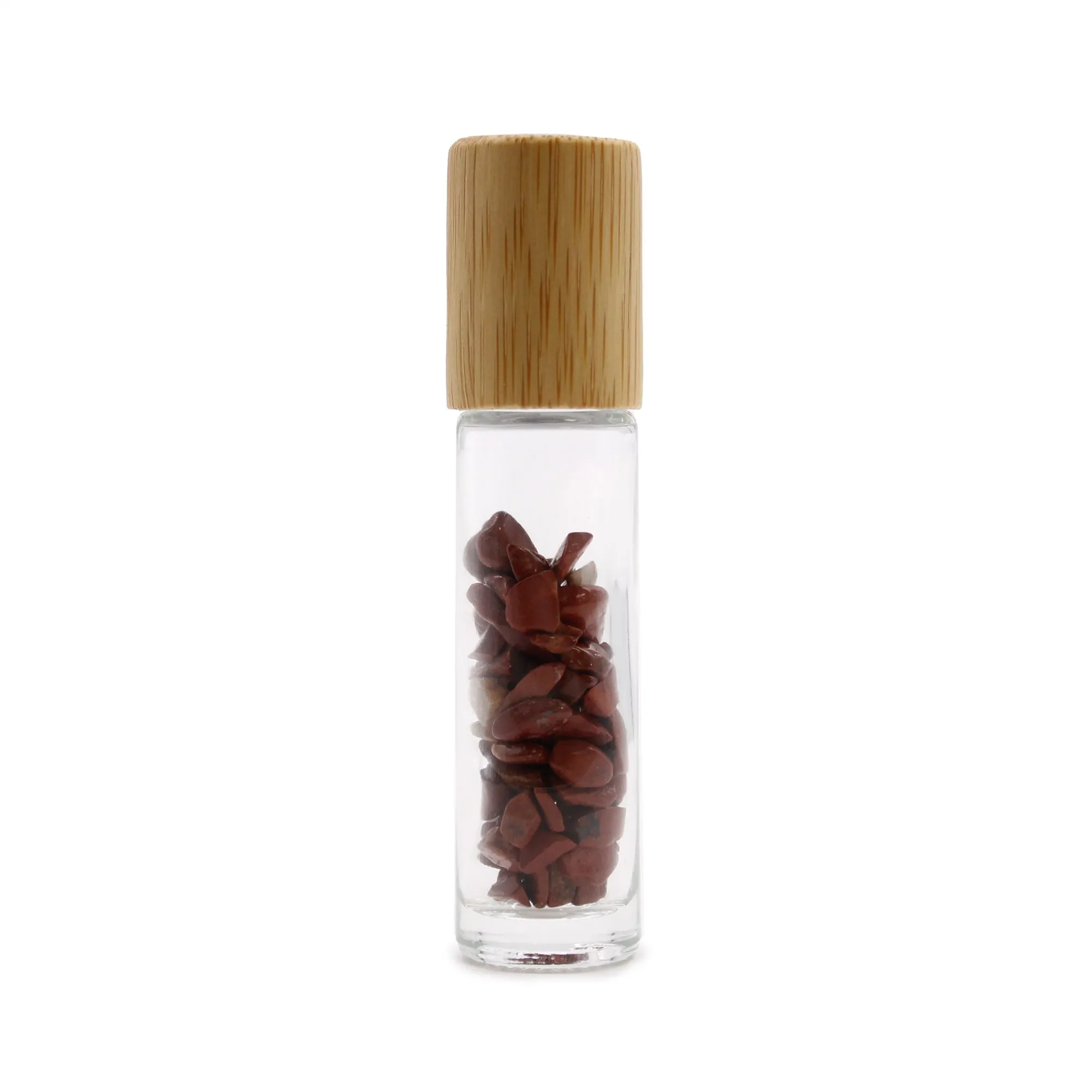 Avasta punase jaspise kristall rollerpudel – elegantne 5 ml klaaspudel poolvääriskivi kuuliga eeterlike õlide kandmiseks igal päeval.