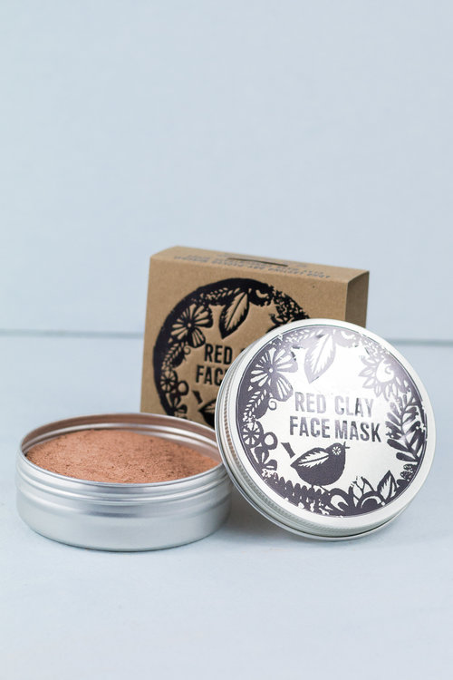 Avasta punase savi näomask alumiiniumtopsis – looduslik savipulber puhastab õrnalt ja jätab naha pehmeks. Ideaalne koduseks spa-rituaaliks!